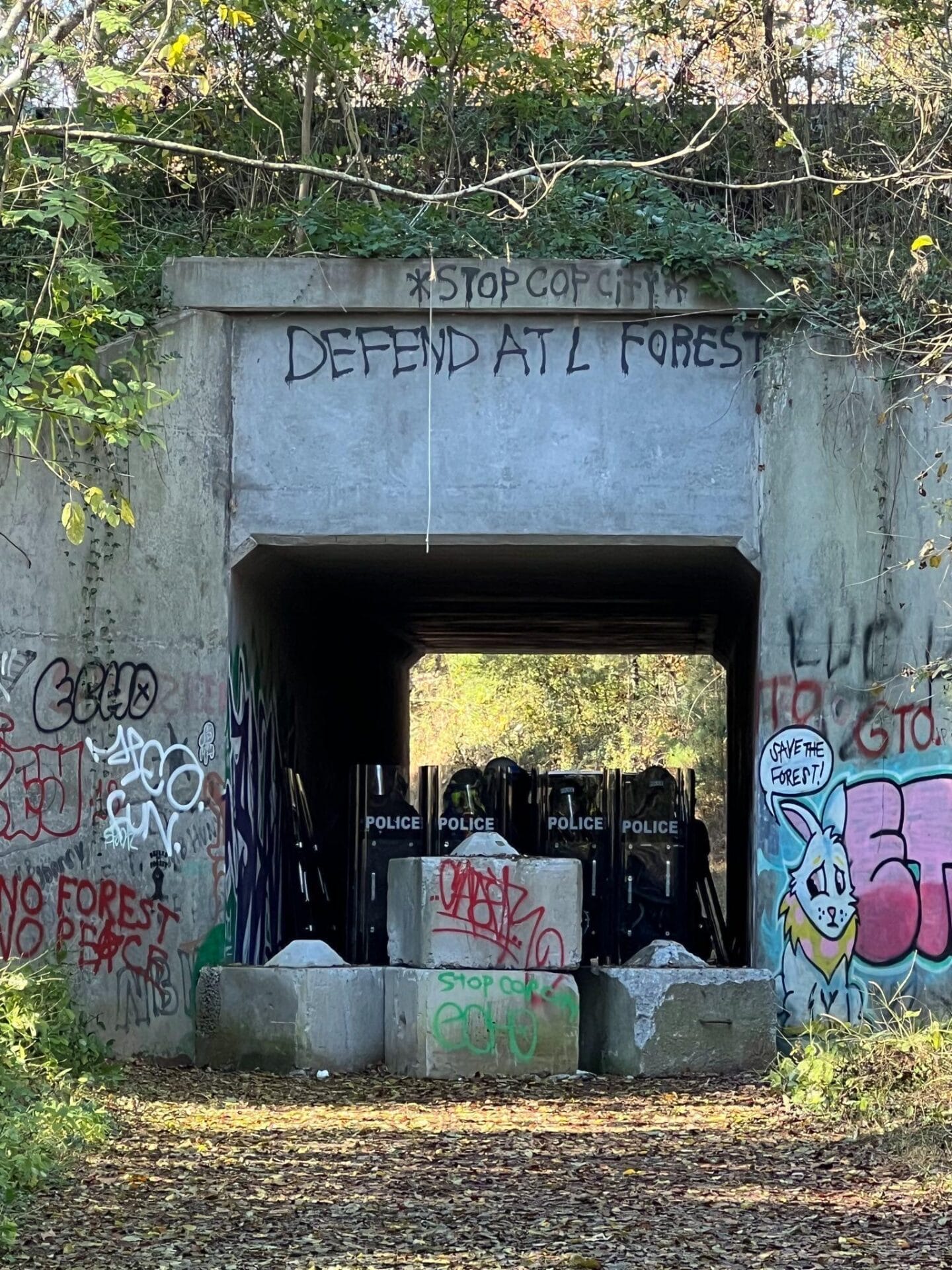 ATLANTA—On Nov. 13, Atlanta police reportedly used Israel Defense Forces (IDF) and Egyptian police crowd control and military-industrial techniques against civilians. That morning, over 500 people gathered in Southeast Atlanta to protest construction of Cop City, a $90 million-plus police militarization facility being constructed in Weelaunee Forest in unincorporated DeKalb County. The protest was a mass nonviolent direct action organized under the name Block Cop City, and hundreds traveled to Atlanta in support of locals in their ongoing widespread resistance of the facility.