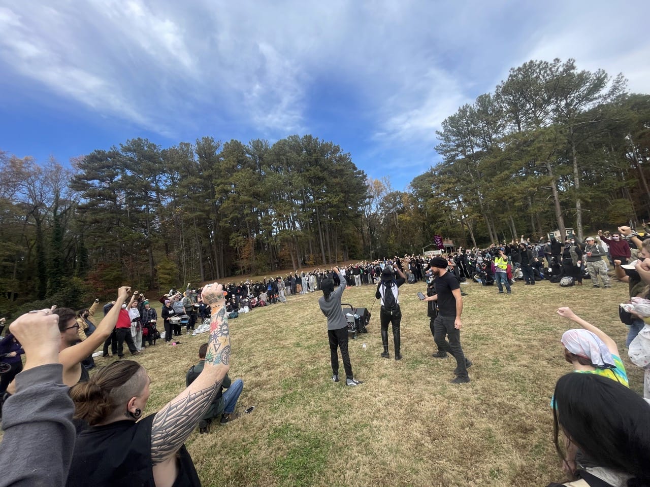ATLANTA—On Mon., Nov. 13, around 8 a.m., hundreds of protesters gathered at Gresham Park in Southeast Atlanta to prepare to march in a mass nonviolent direct action at the construction site of “Cop City,” the $90-million police militarization facility being built in Weelaunee Forest. The protest organized today is known as Block Cop City, which was announced after Atlanta officials refused to begin the verification process of 116,000 signatures collected during the Cop City Vote referendum process.